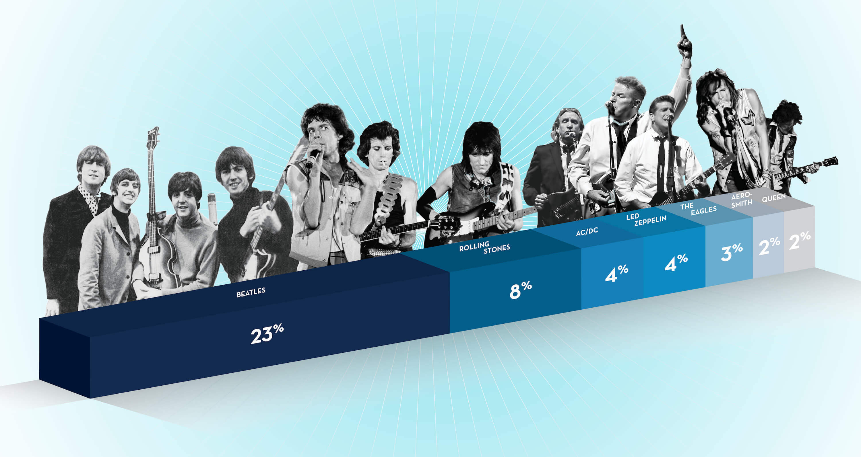 The latest example: In a national poll conducted by Monmouth University’s Polling Institute, Americans were asked to name the greatest rock ’n’ roll band or group of all time. Nearly 1 in 4 (23 percent) said the Beatles. The Stones finished a distant second, with just 8 percent naming them. AC/DC, Led Zeppelin, The Eagles, Aerosmith, and Queen were the only other bands named by more than 1 percent of respondents.