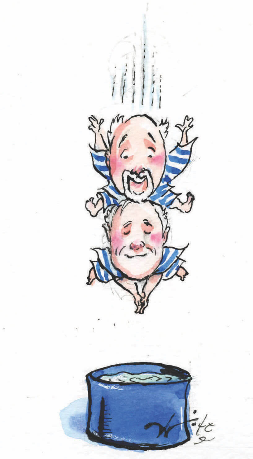 It’s been almost five decades since Peter Bruckmann ’70 and Jeffrey Buchner ’71 last performed together, yet their faces still light up in unison as they recall their old clown diving routines. “It was slapstick, almost like old vaudeville,” Buchner says of the performances he and Bruckmann put on at aquatic events on campus and throughout the tristate area between 1967 and 1970.