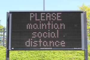 A BIG THANK YOU — In early May, Monmouth erected this sign on Cedar Avenue as a thank you to the health care workers and first responders working on the front lines of the pandemic—including many of our own alumni. On May 1, President Patrick F. Leahy announced the addition of the sign, tweeting: “This new sign on the @MonmouthU campus says it all.”