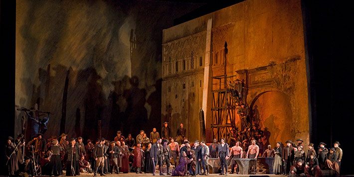 Soprano Anna Netrebko’s dramatic and vocal skills are on full display in her next new role at the Met—Leonora, the Verdi heroine who sacrifices her own life for the love of the gypsy troubadour. Tenor Yonghoon Lee sings the ill-fated Manrico, baritone Dmitri Hvorostovsky is his rival, and mezzo-soprano Dolora Zajick is the mysterious gypsy with the troubled past. Marco Armiliato conducts Sir David McVicar’s Goya-inspired production.