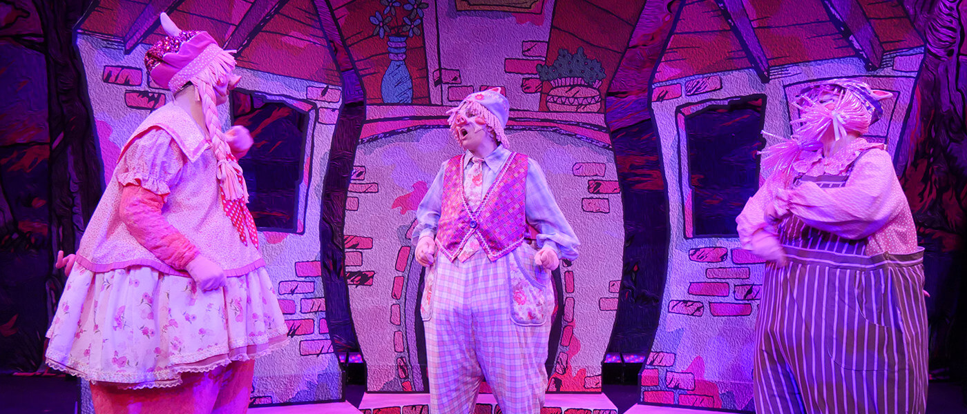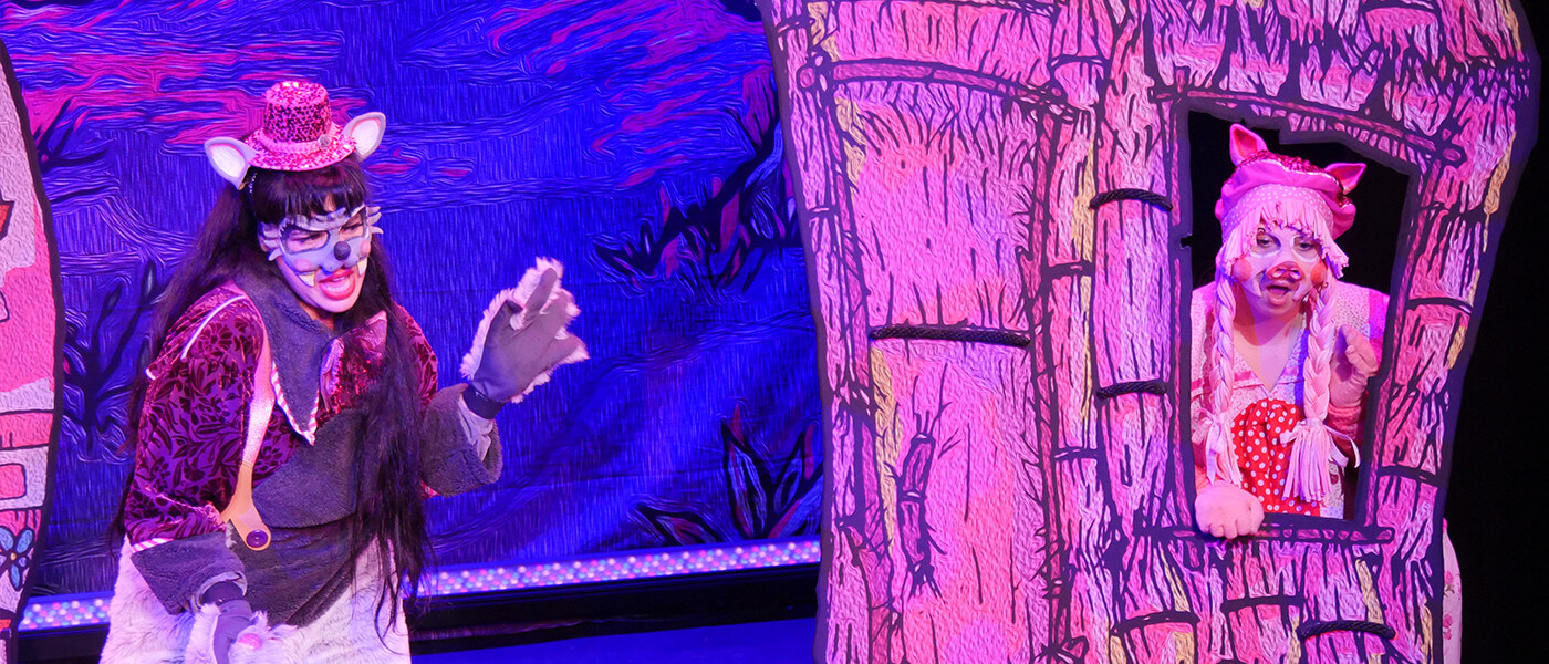 Mamá Piggy narra esta adaptación bilingüe que cuenta con el protagonismo de una loba vegetariana y las tres cerditas más lindas de este lado de la ciudad. Acción, aventura y música salsa, así como otros ritmos latinos, harán mantener al público aplaudiendo hasta un final feliz. Recomendada para estudiantes de Pre-K hasta 5to grado. Funciones bilingües.