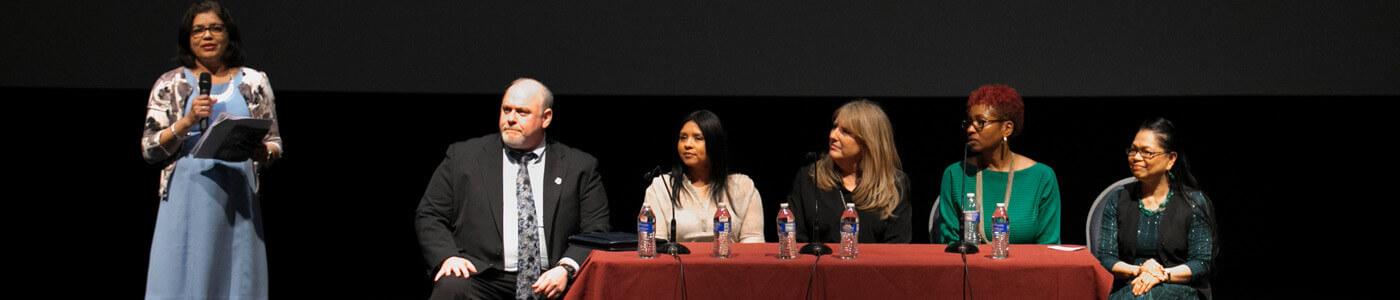 Immediately following the screening, there was a panel on human trafficking featuring the following members of the community: Wincy Terry and Susan Panzica, from the NJ Coalition Against Human Trafficking; Dr. Guia Calicdan-Apostle, the Vice President of The HEAAT Foundation; Keyla Munoz, FBI; and Det. Shawn Murphy, SVU Monmouth County Prosecutor’s Office. The panel was moderated by Monmouth University Professor of Political Science and Sociology, Rehka Datta.