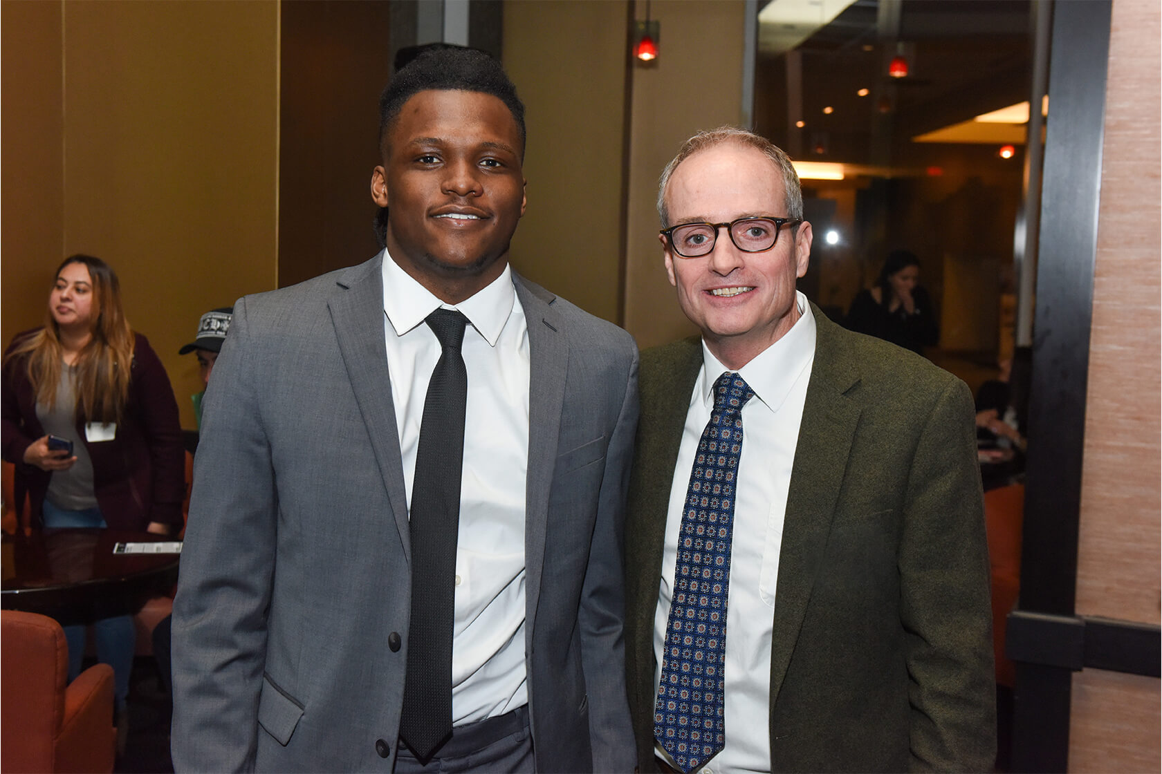 Monmouth University senior business student Kadeem McKnight was recognized as the 2025 College Program Big Brother of the Year by Big Brothers Big Sisters of Coastal and Northern New Jersey (BBBSCNNJ) at the organization’s Mentor Appreciation Night on Feb. 10.