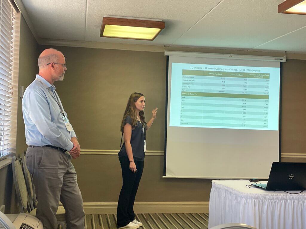 Van Dalinda was one of four students honored at the conference, earning a scholarship award. Their paper, “Green Muni Bonds in New Jersey, 2015-2024,” which examines green municipal bonds in New Jersey, was also selected for publication in the Conference Proceedings.
