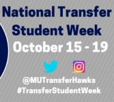 Join in celebrating National Transfer Student Week. Follow The Office of Transfer and Undeclared Services on Twitter and Instagram to join the conversation. Students can also stop by the Transfer Nook anytime from Oct. 17 to Oct. 19 for activities and prizes.