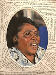 The subjects of her paintings bring the once silenced women of color to the forefront. Foster notes, “Ida B. Wells-Barnett was a founding sociologist who, like other women and men of color in our discipline, had been written out of the historical record for decades, despite her phenomenal work to end lynching in America. The same is true for powerhouse civil rights leader Fannie Lou Hamer who exemplifies the best in applying sociology in the community organizing tradition. And as someone who studies mass incarceration as a major contemporary ethical issue, the opportunity to paint Charlane Oliver, who has paved the way to end felony disenfranchisement in Tennessee, was really special.”