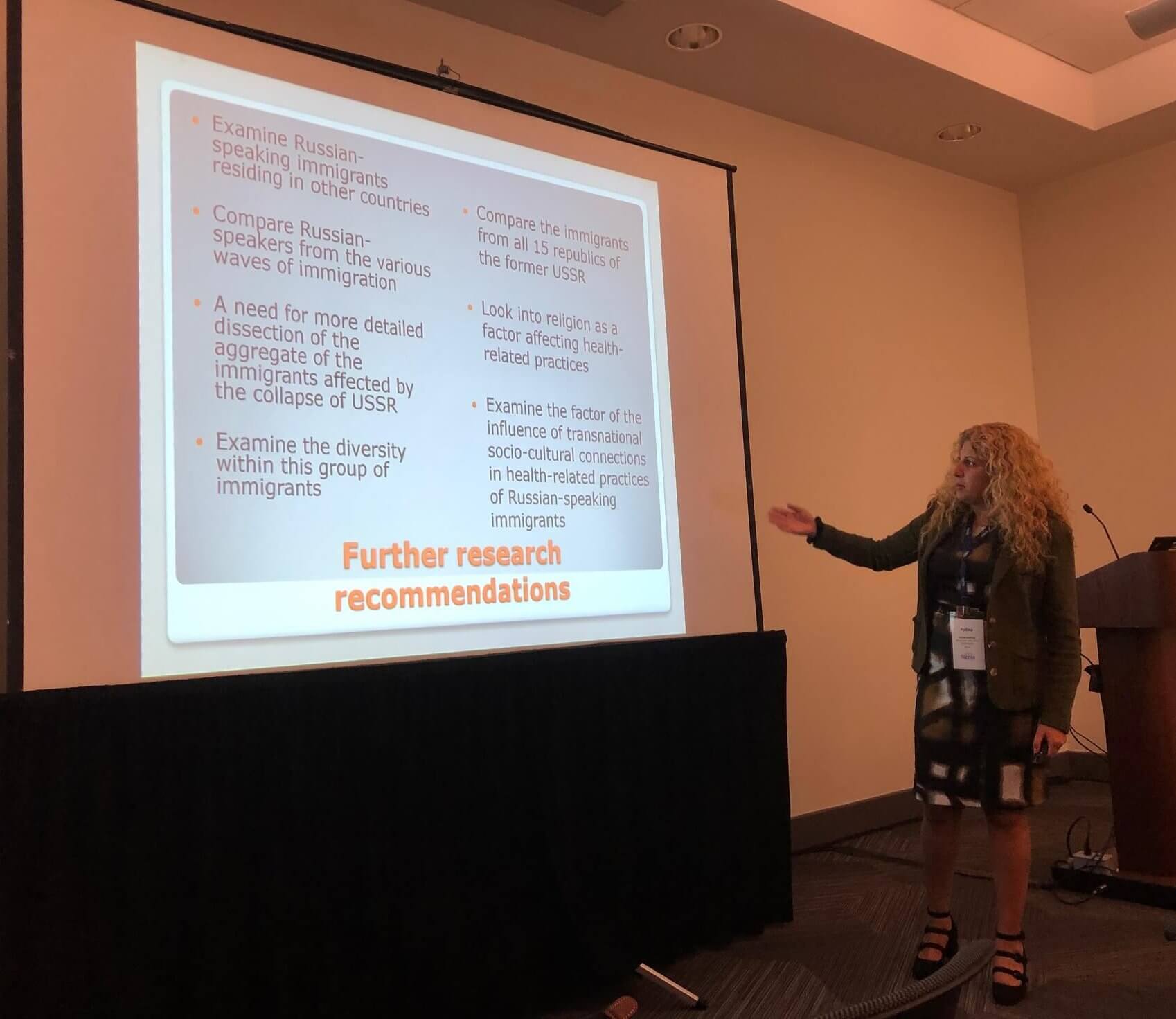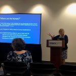 Judith Egan, Ph.D., coordinator of the pre-licensure Bachelor of Science in nursing program, presented her research “General Systems Theory Guided Evaluation of a Remediation Policy for Students Preparing for NCLEX-RN”; Patricia Sciscione, Ph.D., assistant professor of nursing, presented her study “Incorporating Future Planning into the Medical Plan of Care for Adults with Down Syndrome”; and Polina Amburg, Ph.D., specialist professor of nursing, presented her study “Traditional Health-Related Practices of Russian-Speaking Immigrants.”