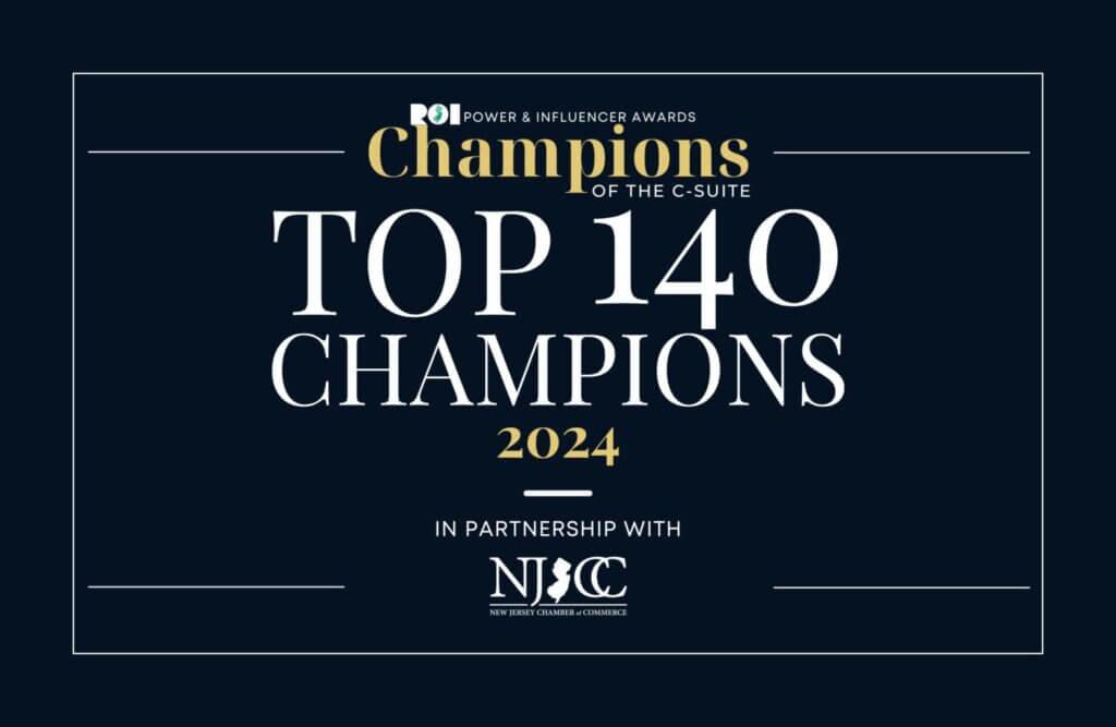 ROI-NJ will recognize the Top 140 Champions at the second annual Champions of the C-Suite event at Hanover Manor in East Hanover, NJ, on Dec. 4. The networking event is co-hosted with the New Jersey Chamber of Commerce. Register for the event.