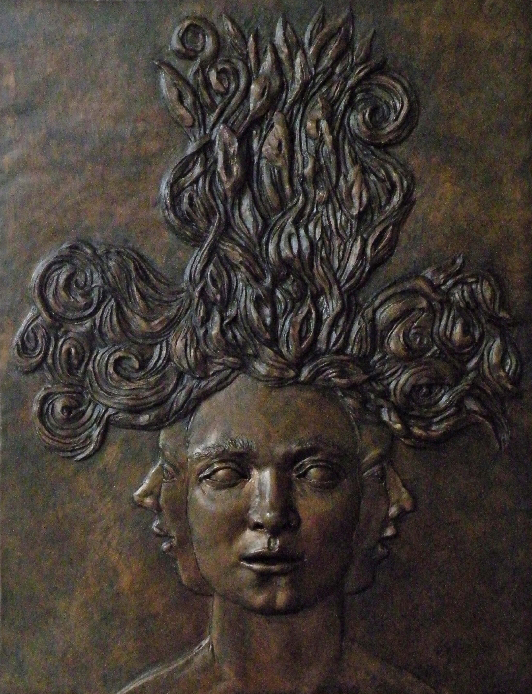 In Empire of the Gods, Callas presents both “Rosetta” and “Anima,” two sculptures that merge the mythic and the ecological. “Anima” explores embodiment and spiritual resonance, drawing on archetypal iconography while rooted in contemporary ecological consciousness. Rosetta, in this context, acts as an ecological relic, linking the corporeal and cosmic through the geometry of living forms. The exhibition, hosted by Bank Gallery, brings together artists who examine divine archetypes and the power structures they represent across time.