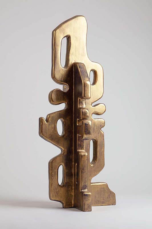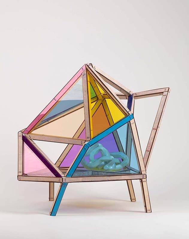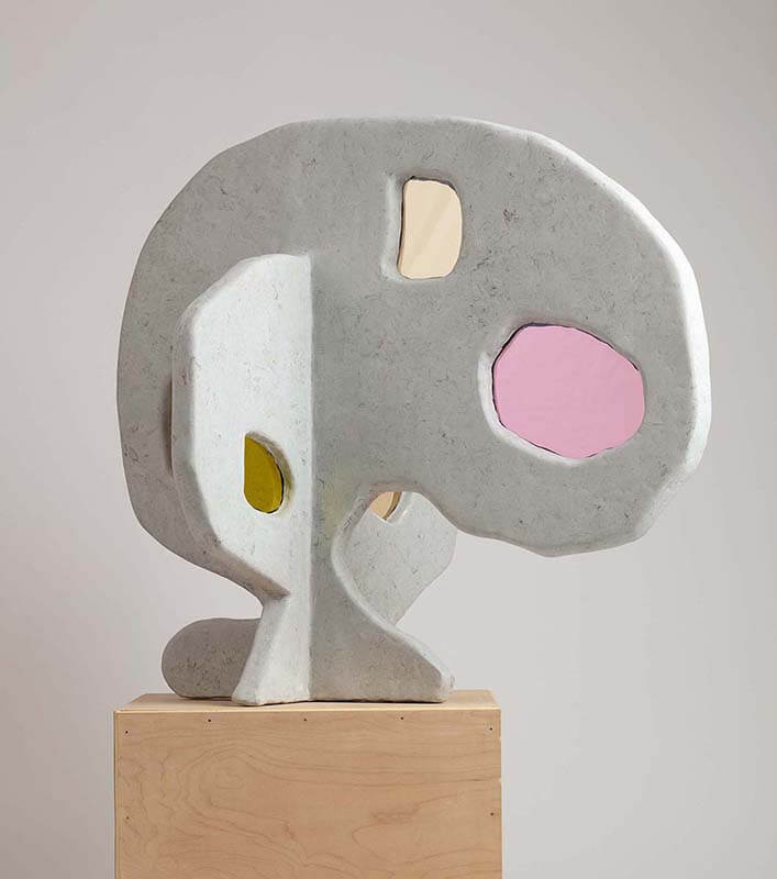 The exhibit features a series of quasi-figurative sculptures of varying shapes, sizes and materials. Like the text-based conversations that shape contemporary discourse, the sculptures appear to communicate with one another in ways both fluid and disjointed. Drawing from popular culture references — including utopian communities, scholar’s rocks, architecture and midcentury playground structures — the works suggest a range of tenuous relationships between nature and the built environment, growth and decay, aspiration and failure.