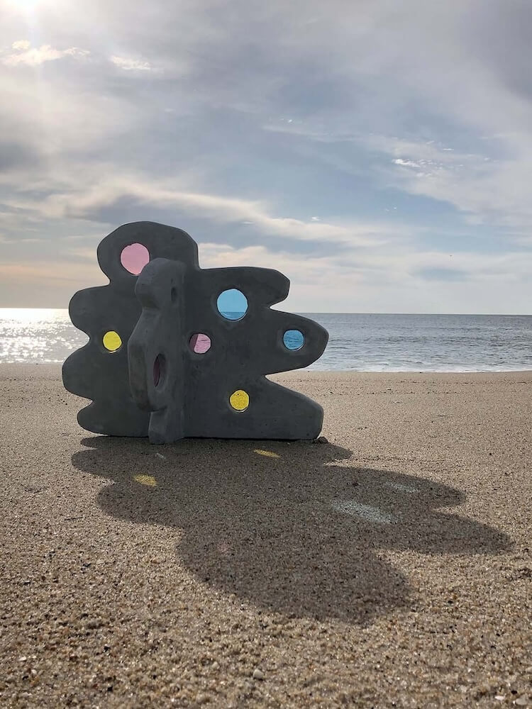 In Lombardi’s accompanying exbition essay, published in Dart International Magazine and in CultureCatch, he observes, “Meyer’s sculptures have a B-movie type futuristic look to them that feels timid in one way and grandiose in another. A bold mix of emotions that gives her work a unique sort of humor that is subtle but effective.”
