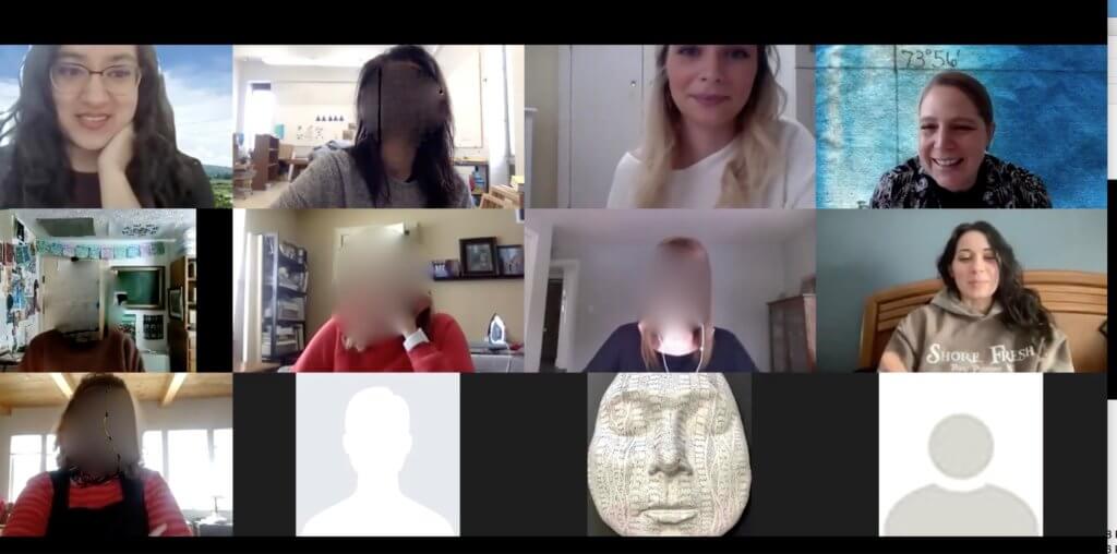 Zoom Window from the CAA Discovering the Ecological Self Workshop. Right to Left: Melania Pugliese, Ashley Mapelli, Kimberly Callas, and Emily Burney