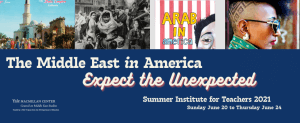 The virtual conference, “The Middle East in America – Expect the Unexpected,” is free and open to the public, but advanced registration is required. The program, which has been designed for public school teachers and educational leaders, runs Sunday June 20 to Thursday June 24 and includes myriad ways of understanding how the people, cultures, faiths, languages and histories of the Middle East and North Africa have enriched America.