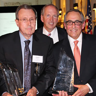 The Monmouth University Kislak Real Estate Institute honored Murray Kushner, chairman of THE KRE Group, with the prominent Leadership Excellence Award and James W. Hughes, Ph.D., dean of the Edward J. Bloustein School of Planning and Public Policy at Rutgers University, with the Service to the Industry Award. The awards were bestowed at its 22nd annual Leadership Excellence Award Dinner on May 28 in historic Wilson Hall on the Monmouth University campus.