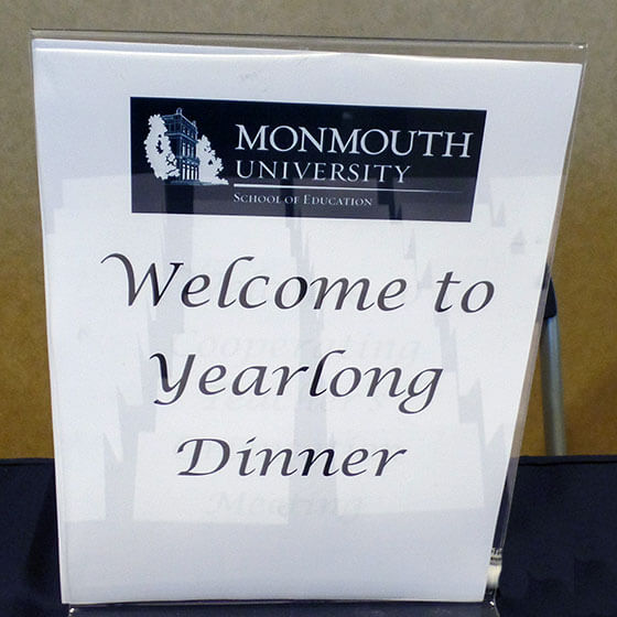 The School of Education hosted a dinner on January 25, 2016 to celebrate the ongoing implementation of the yearlong clinical experience program. Throughout the evening a variety of speakers shared their work in developing the yearlong experience. They included, among others: Greg Duffy, Principal at Lafayette Mills Elementary School; Ed Aldarelli, Principal at West Freehold Elementary School; Linda Foster, Coordinator of the School of Education Mentoring Program; Meredith Riddle, Director of the Provisional Teacher Program; and John Henning, Dean of the School of Education.