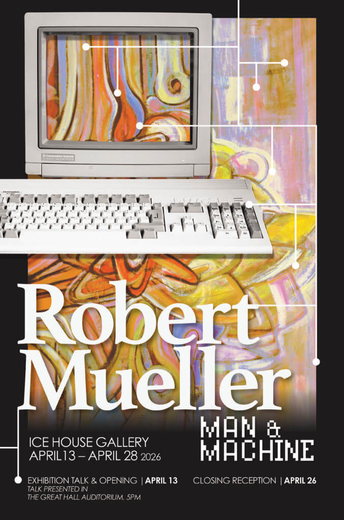 “Robert Mueller: Man and Machine” is currently on display along with the Department of Art and Design’s Senior Exhibition until Sunday, April 26, when the galleries will hold a closing reception from 1-4 p.m. Merritt also presented a curator talk as part of Student Scholarship Week on April 13 before she visited the exhibition with her audience.