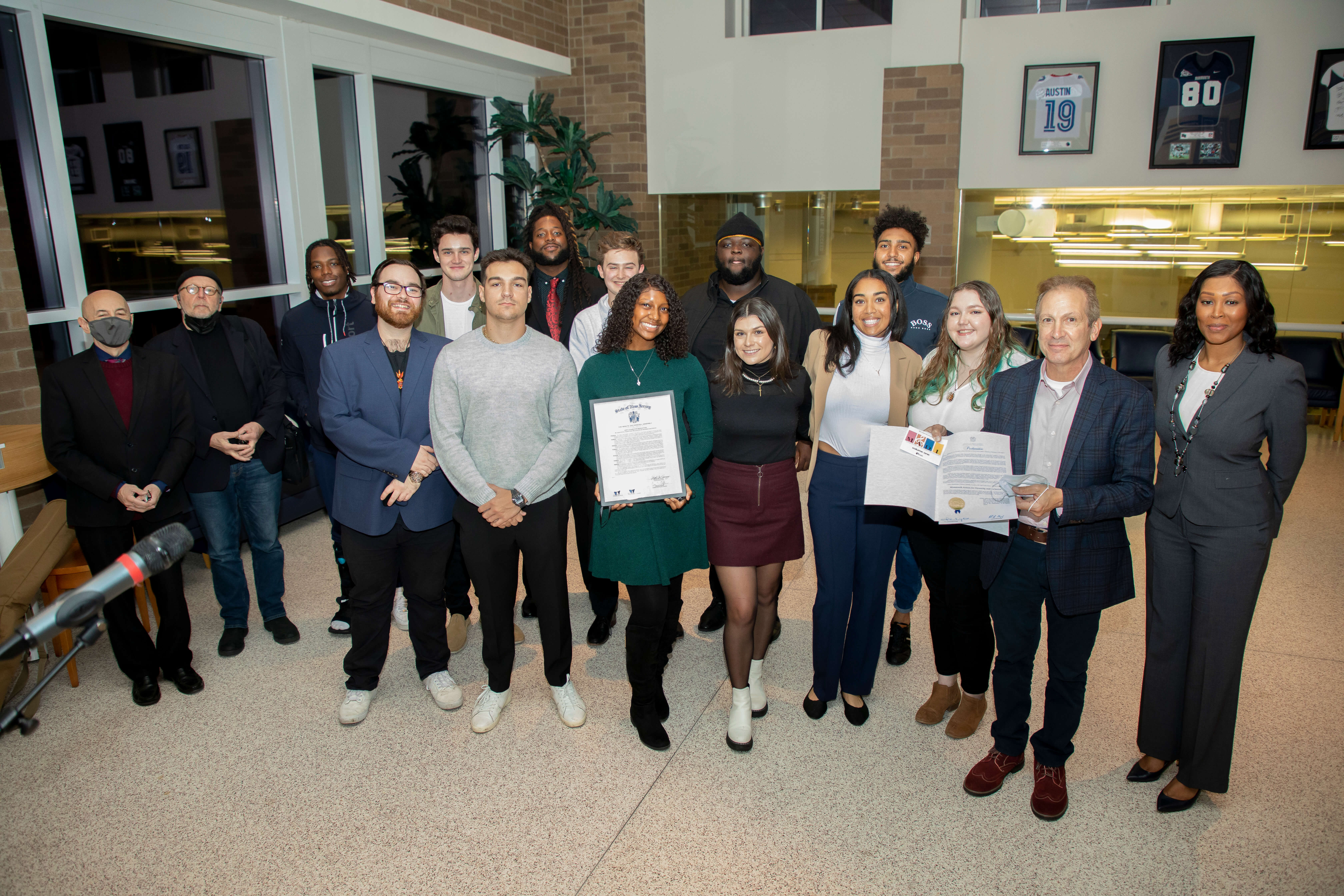 Founding members of MADI recognized in the proclamation include Monmouth University students Ezrah Archie, William “BJ” Biedbach, Shadiyah Jai Belton, Kendall Brighton, Kayla Booker, Hassan Chambers, Connie Chianetta, Emmanuel Christian, Ben Davis, Michelle Etienne, Amanda Hayes, Jenae Louis-Jacques, Megan Rice, Connor Rupp, Dillon Schindler, Vic Tartara, Nicole Totland, and Max Wolf, as well as faculty members Lawrence Jones, Joseph Rapolla, and Rashida-Scott Cruz.