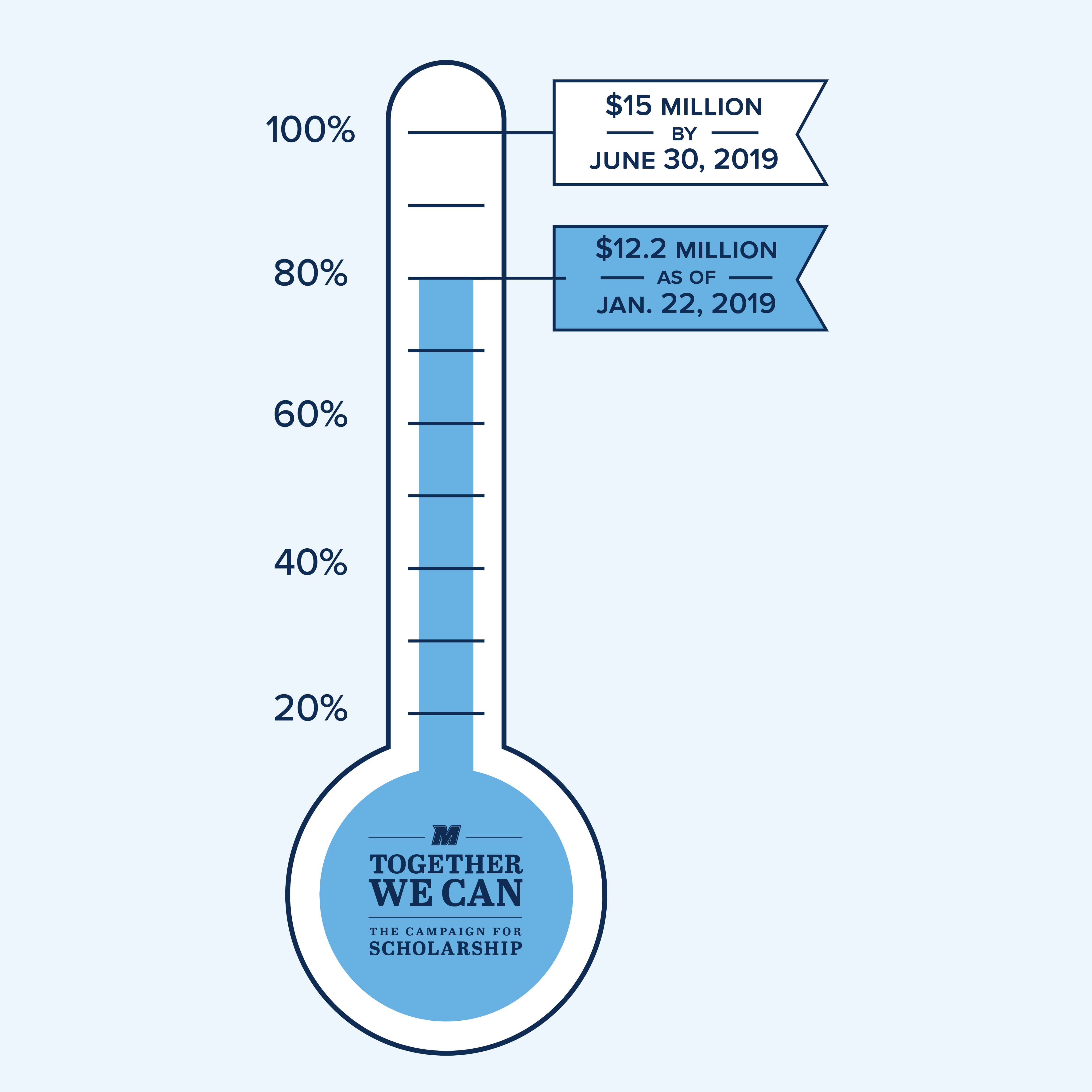 Vice President for University Advancement Jonathan Meer announced on Jan. 28 that the effort to raise student scholarship funds for Together We Can: The Campaign for Scholarship had reached 80 percent of its goal with $12.2 million in gifts and pledges committed to date.