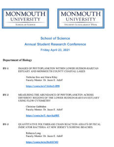 To view the Honors students’ projects on our eCampus site, please visit and sign in with your Monmouth University credentials: Spring 2021 Honors School Research Conference
