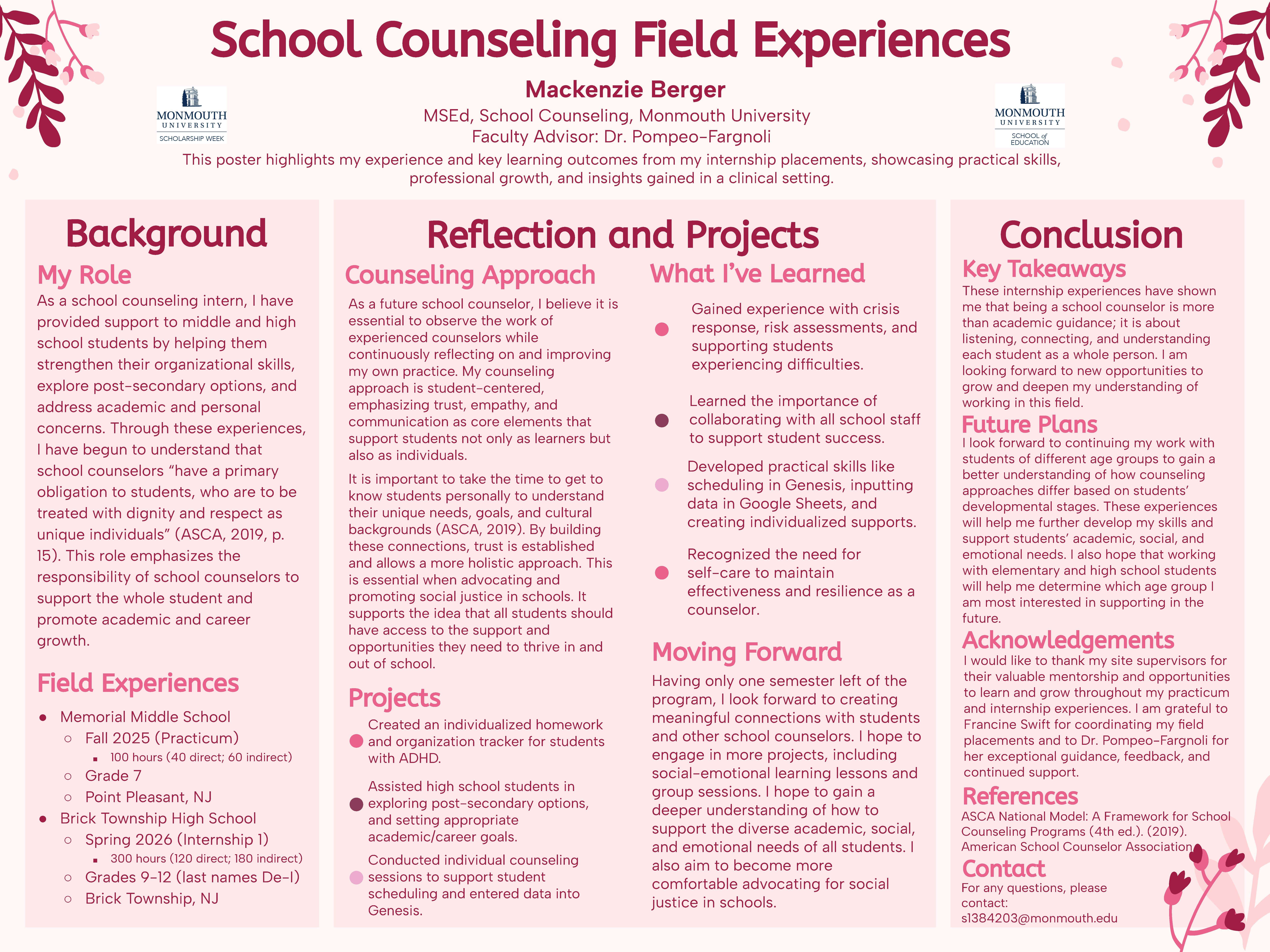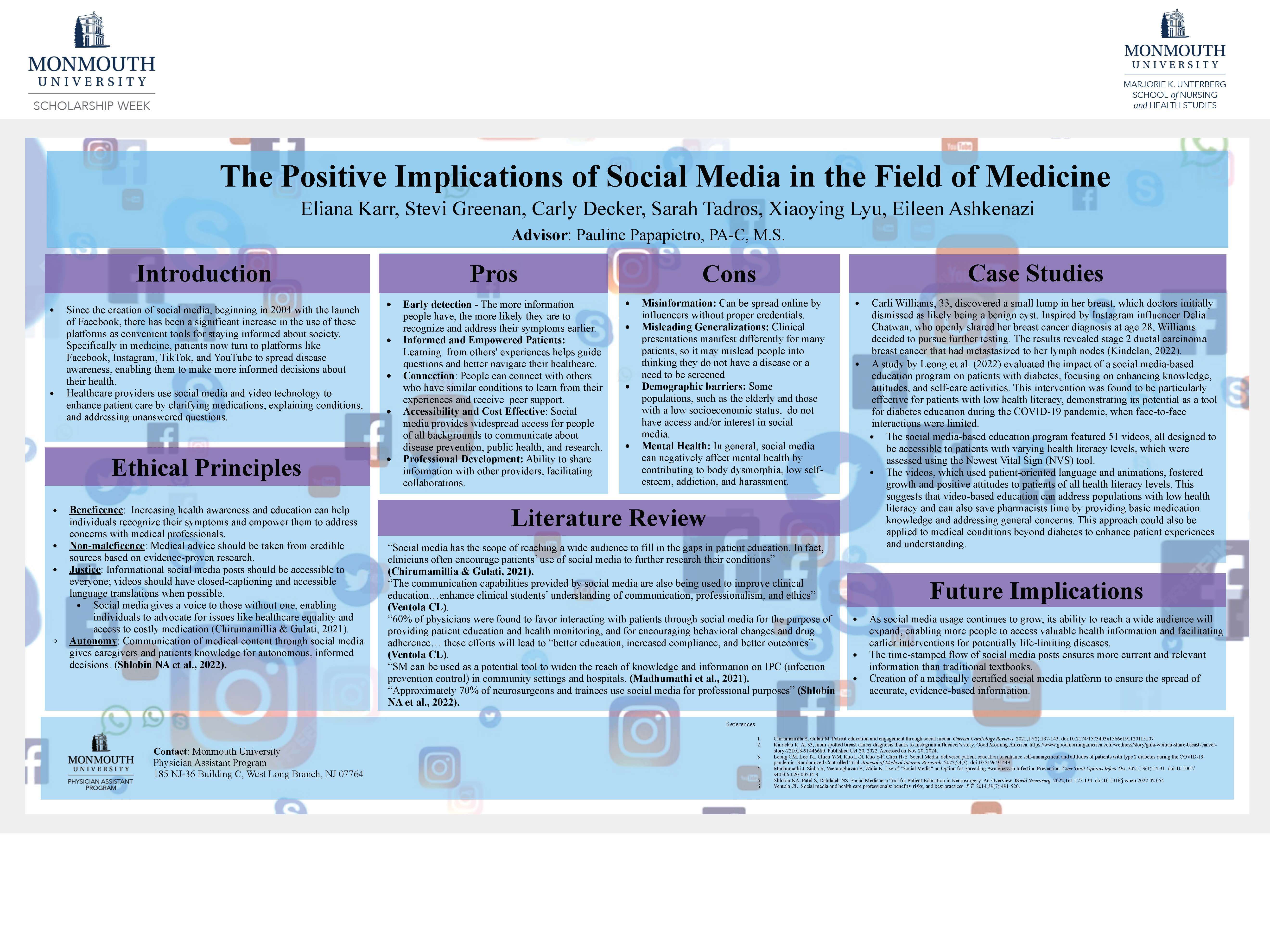Click on underlined poster title for full-resolution poster image. A special thanks to Dr. Shannon Clifford, Acting Dean of the Marjorie K. Unterberg School of Nursing & Health Studies for underwriting the cost of printing all of the Student Scholarship Week posters this year.