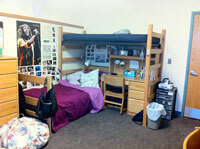 These buildings are designed with rooms connected by a central hallway with every unit sharing a common bathroom. They are co-ed by room.