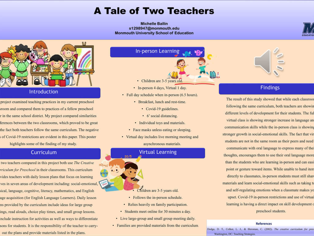 This category is designed to highlight other scholarship that is taking place in the classroom that involves thoughtful inquiry or analysis according to the standards of your field. This category may include developing a lesson plan based on current pedagogy, an in-depth analysis of a policy or problem in the field, or a service learning experience that transformed understanding of the field. This category might also include timely and creative practices that were developed in the face of a virtual/hybrid Covid-19 educational environment. These are just examples, and this category is designed to demonstrate that scholarship in each field is often broader than a traditional social science research paradigm.