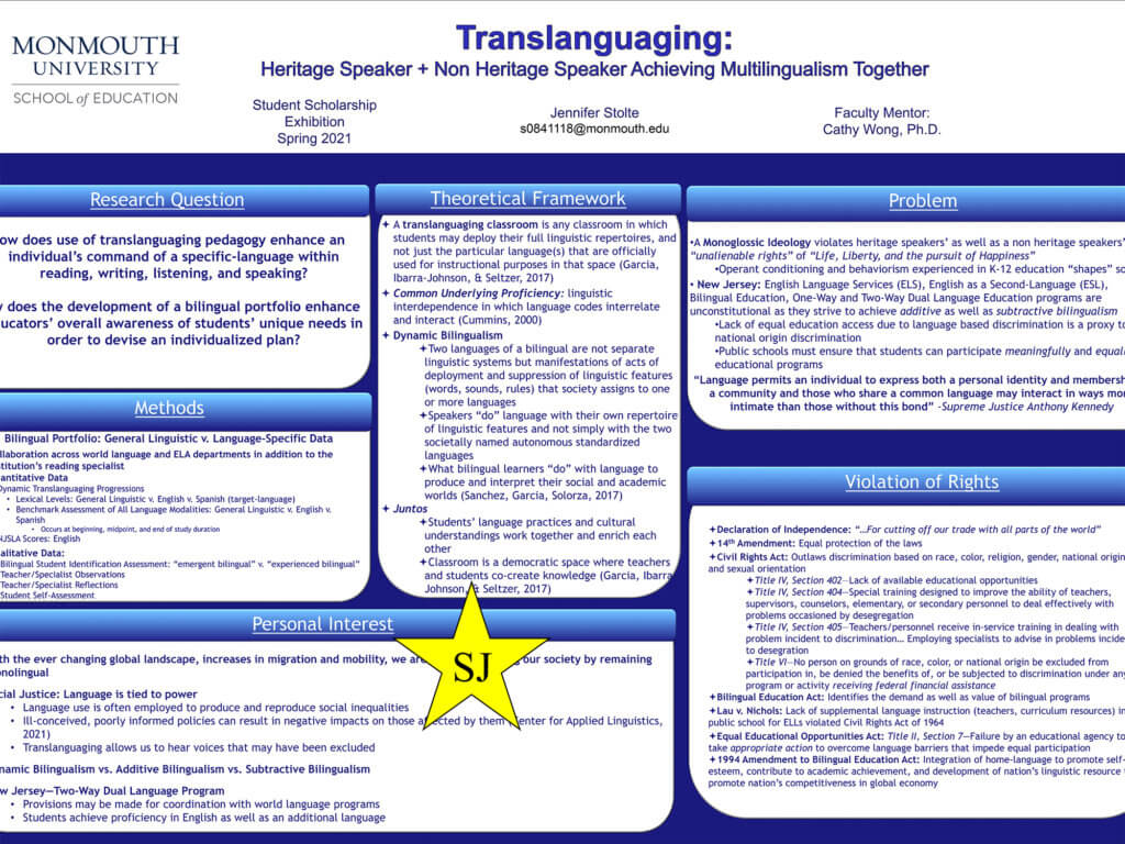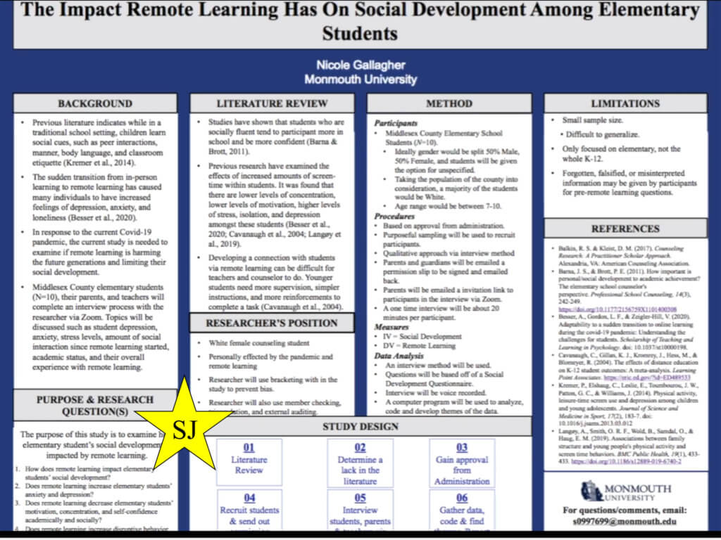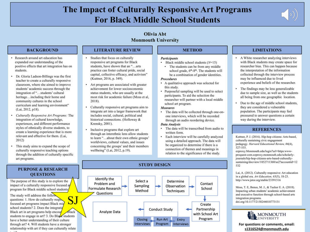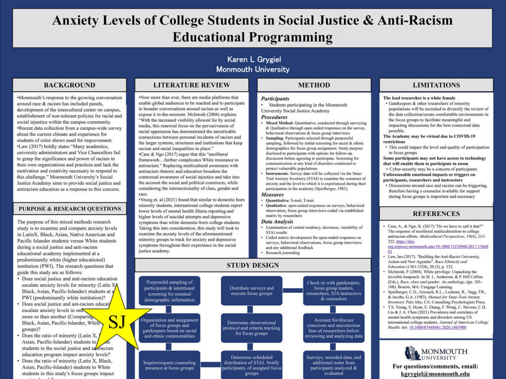 Posters with the gold star “SJ” icon indicate scholarship that promotes one of the following areas: Awareness, Advocacy, Activism.