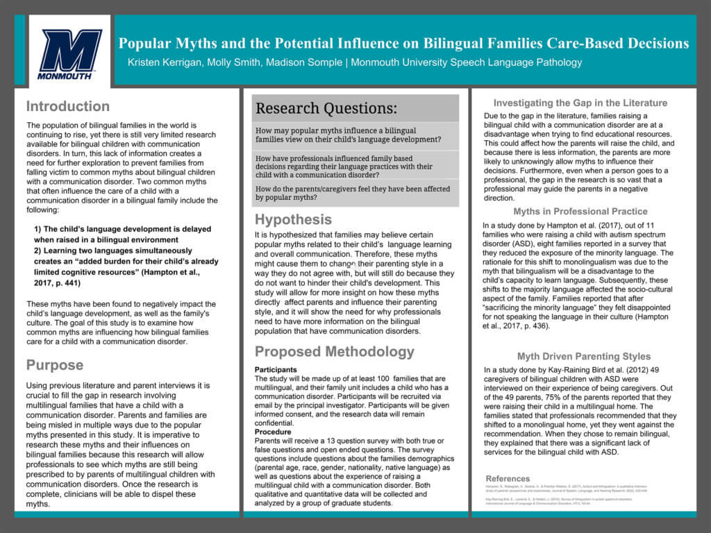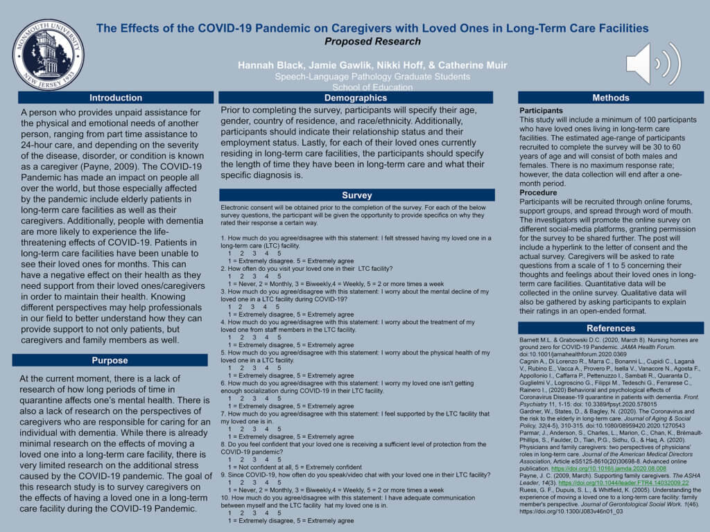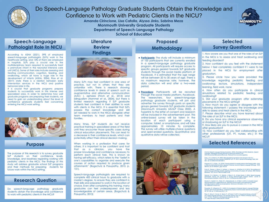 This includes research that has not entered data collection, however uses the research process for problem identification, research question formation, and a plan for conducting research. Posters should walk through the research planning phase and likely include background, purpose, and methods sections, though no specific format is required.