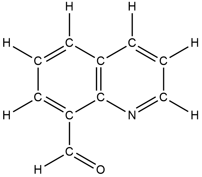 Quinoline-8-carbaldehyde (Q8C, Figure 1) is a substance of considerable interest. Q8C serves as a substrate for several catalytic transformations. Q8C, or its derivative quinoline-8-acyl (Q8acyl) also serves as a ligand (a supporting portion) for molecular substances built around later transition metals such as rhodium, iridium, platinum, and palladium. Our research group recently expanded the chemistry of Q8C and its derivatives by binding Q8C and its Q8acyl derivative to rhenium, a mid-transition metal. We are interested in reactions of Q8C with rhenium-containing complexes for two reasons: 1) Q8C provided an excellent candidate substrate for the exploration of a new rhenium-based C-H bond activation and 2) Q8C and its derivatives, when bound to rhenium, can provide a potential scaffold on which to build new rhenium-centered cytotoxins (potential chemotherapeutics) or cell imaging agents (substances that are useful in examining mechanisms of cytotoxicity). Our group has an interest in rhenium-based cytotoxins.