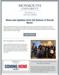 Social Working is our new and improved e-newsletter. We hope you like the new style and format. It is designed to bring you current news and events from the School of Social Work. Look forward to reading this three times a year. Use the links below to access our newsletter.