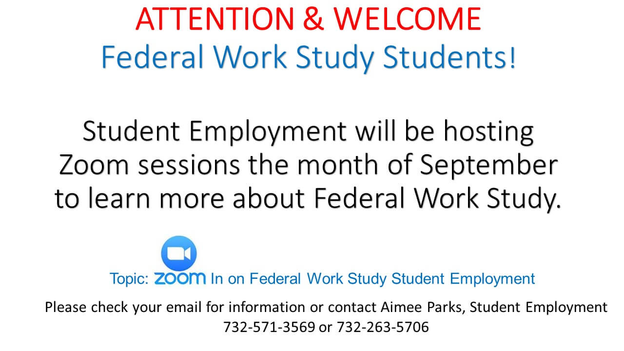 The Student Employment Office oversees all aspects of on-campus student employment and off-campus community service. The Office of Student Employment is located in the Great Hall, Room 322, 732-263-5706. All U.S. citizens and permanent residents who are undergraduate matriculated students must first complete a Free Application for Federal Student Aid (FAFSA) in order to be eligible to work on campus. Monmouth University’s policy on student employment grants preferential hiring status to students eligible for Federal Work Study award