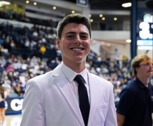 Luke Moleski has been recognized for his exceptional leadership and impact as a production room assistant and game day host in the Athletics Department at Monmouth University.