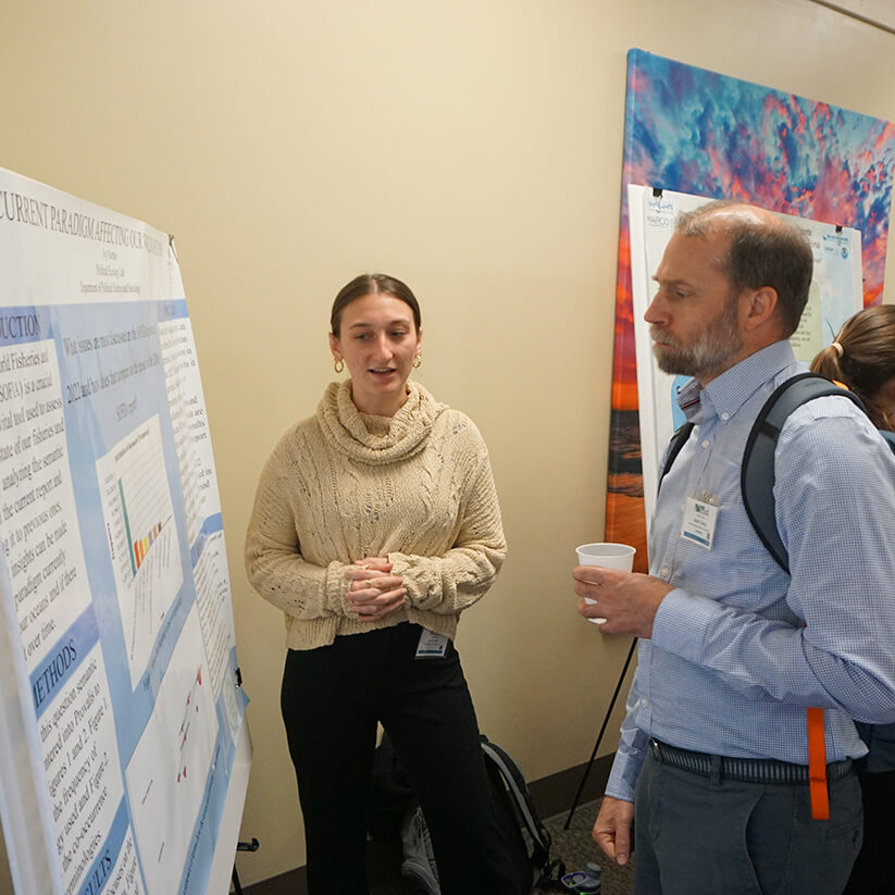 Three Monmouth University student researchers presented posters at the Sixth Annual Mid-Atlantic Ocean Forum, held May 13-15 in Lewes, Delaware. Hosted by the Mid-Atlantic Regional Council on the Ocean (MARCO), the Forum is the region’s premier annual event dedicated to ocean planning, gathering ocean professionals and stakeholders representing federal and state agencies, Tribal entities, marine industries, nonprofit research and advocacy organizations, and the public. The poster session was organized in partnership with the Mid-Atlantic Regional Association Coastal Ocean Observing System (MARACOOS).