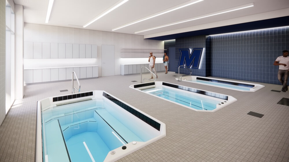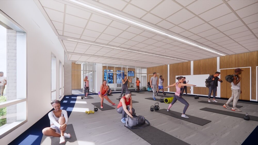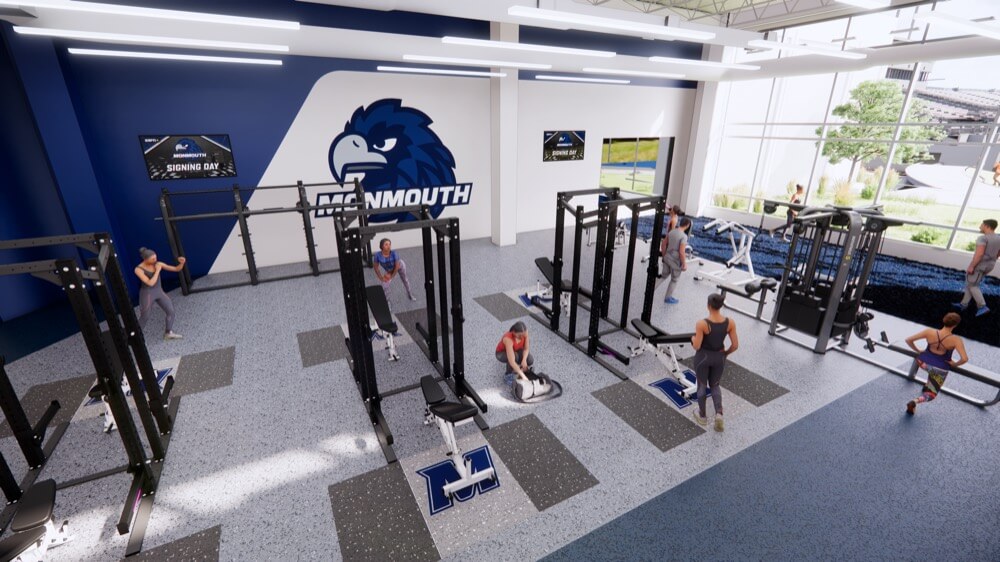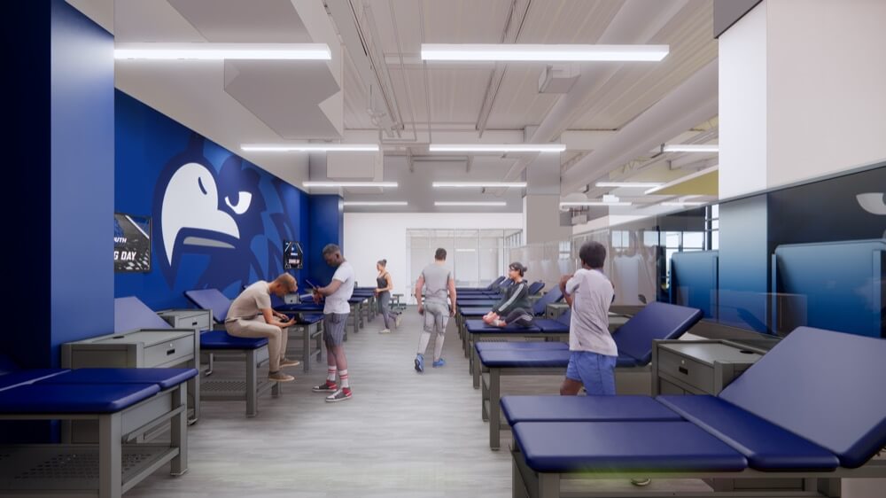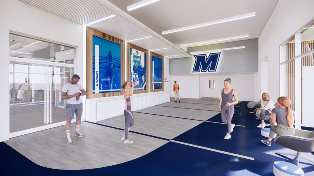 An extension of the existing OceanFirst Bank Center, and initially seeded by our friends at Hackensack Meridian Health, this $28 million, 23,000-square-foot expansion will enhance the health and wellness of our students. Comprised of four main sections, this functional and attractive space will include: a main lounge; a sports medicine and athletic training lab with hydrotherapy pools; flexible wellness space; and an enlarged fitness center.